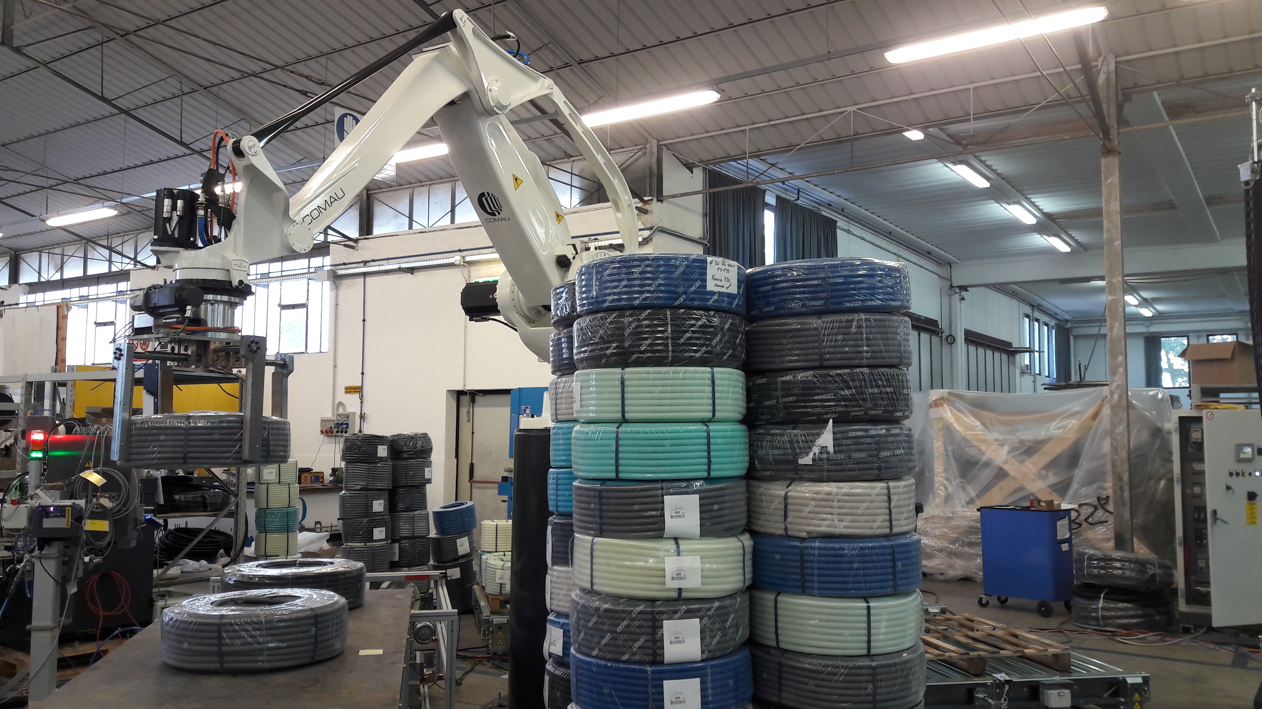 Il robot antropomorfo di pallettizzazione è il prodotto più versatile, flessibile e veloce adatto alla gestione del prodotto prelevandolo dalle linee di produzione fino alla sua pallettizzazione.